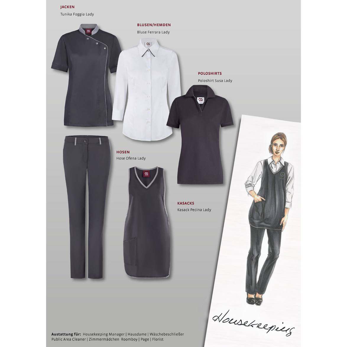 Wer für das makellose Erscheinungsbild eines ganzen Hauses verantwortlich ist, der sollte diesen Anspruch auch mit seiner eigenen Bekleidung verkörpern. Bewegungsfreundliche Kombinationen im Corporate Design des Hauses vermitteln jedem Besucher ein stimmiges Bild der Unternehmensidentität.
