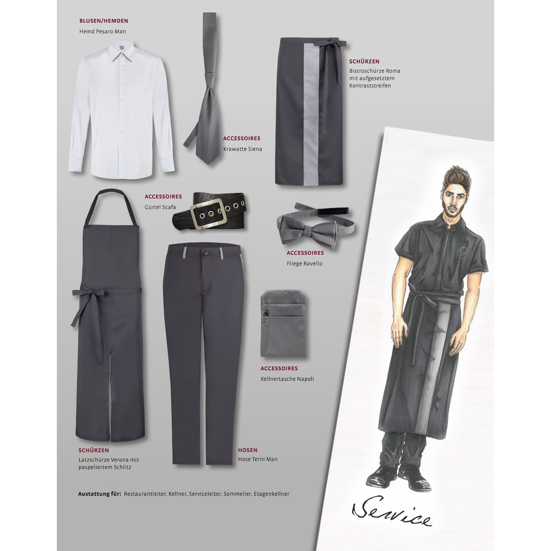 Wenn es "Guten Appetit" heißt, dann isst bekanntlich auch das Auge mit. Tadellos sitzende, gepflegte und mit dem Ambiente harmonierende Kleidung des Servicepersonals gehört unbedingt dazu, damit der Gast seinen Restaurantbesuch mit allen Sinnen genießen kann und in positiver Erinnerung behält.